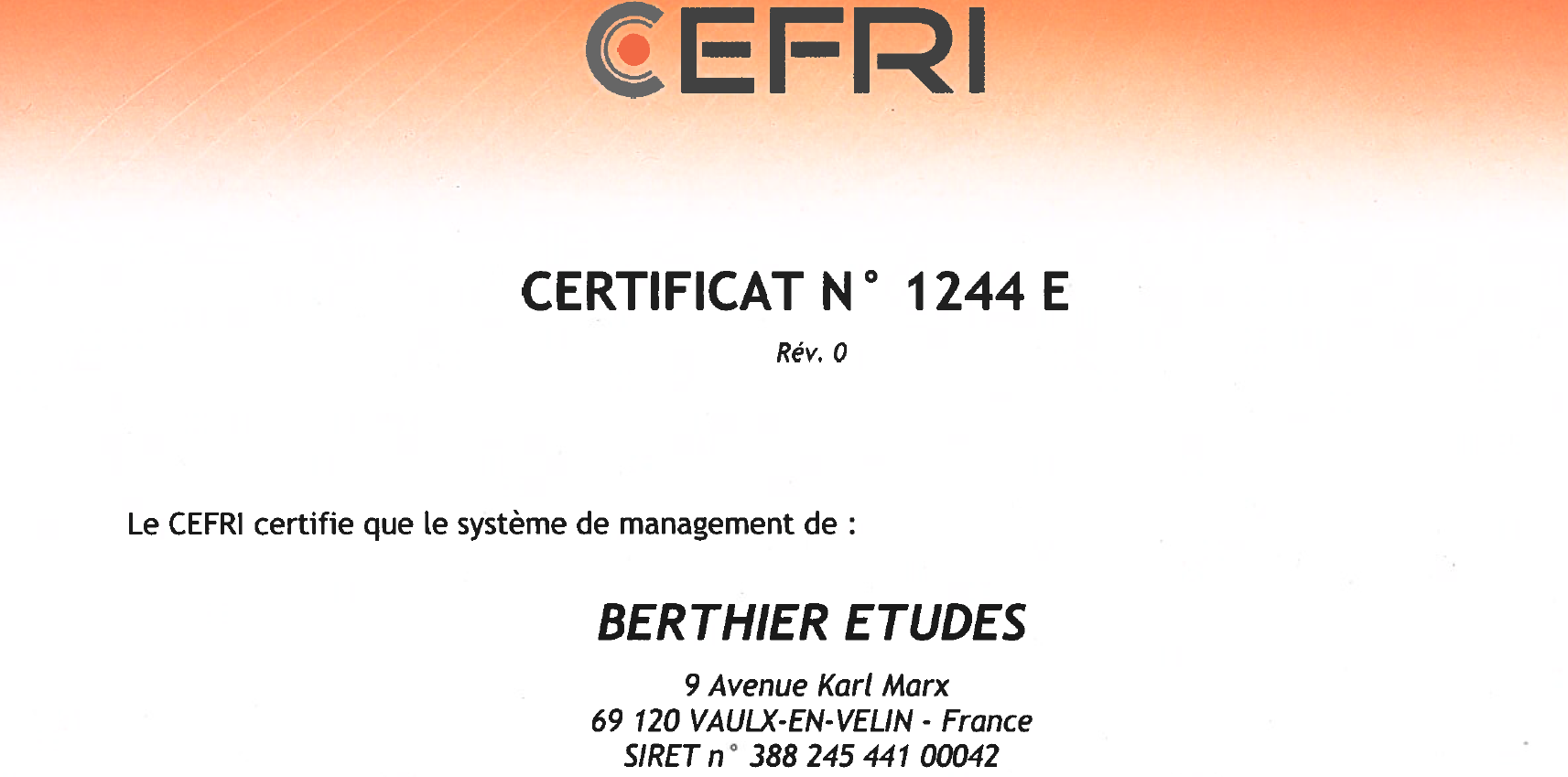 This approach is concretized by the obtention of the ISO 9001 certification, for more than 10 years and renewed in 2018.